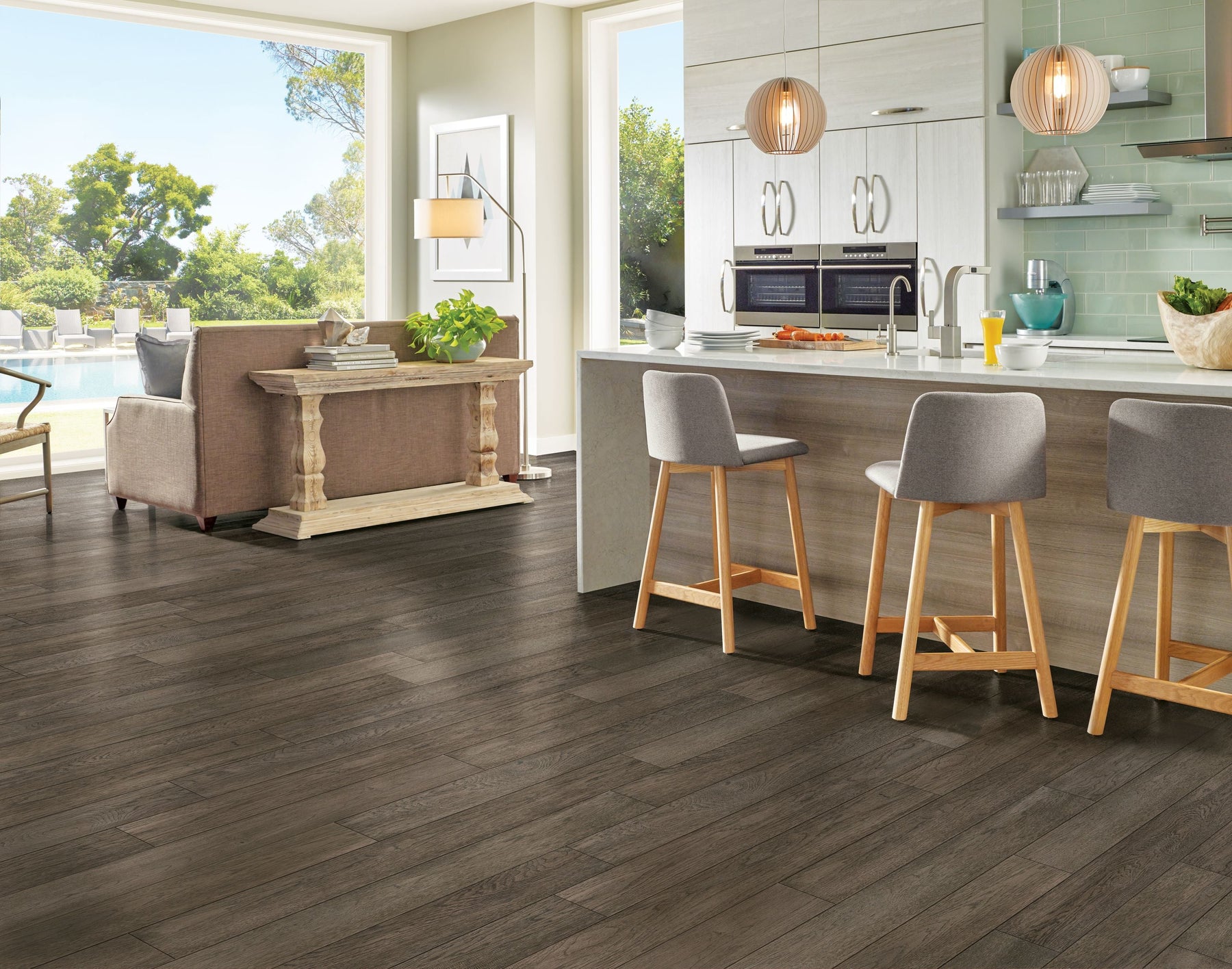 Bruce Hydropel Taupe Hickory Flooring infuses any room with a sense of sophisticated elegance, thanks to its rich, natural wood tones and exquisite wirebrushed finish. This flooring enhances not just the aesthetics but the atmosphere, complemented by its quiet resilience to life's daily dramas. Consider pairing this sumptuous flooring with polished marble accents for an ultra-luxurious vibe—a seamless blend that speaks to refined living. Make this enduringly stylish hardwood flooring the foundation of your home's luxury narrative.