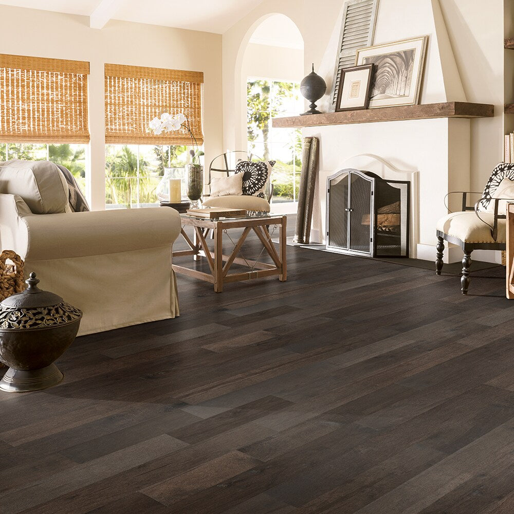 Elevate your space with the perfect blend of rustic charm and modern durability—upgrade to Bruce's Dark Brown Maple Engineered Hardwood Flooring today.