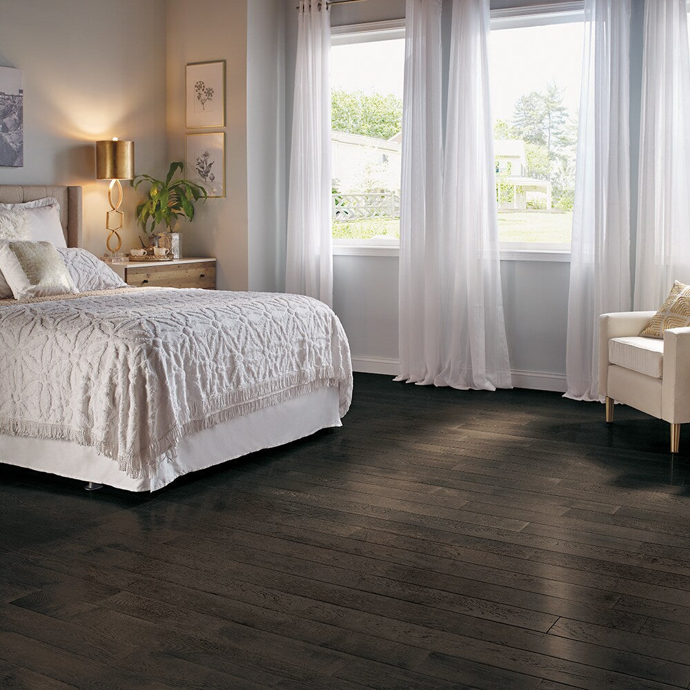 Infuse your home with the timeless elegance of Bruce's Dark Gray Oak Hardwood Flooring. The wirebrushed finish unveils the innate beauty of each oak plank, offering a textured surface reminiscent of storied antique wood. Create a dynamic, stylish room by pairing this flooring with modern metallics or rustic wood accents. More than just an aesthetic choice, this flooring symbolizes sophistication, making it a must-have for luxurious living.