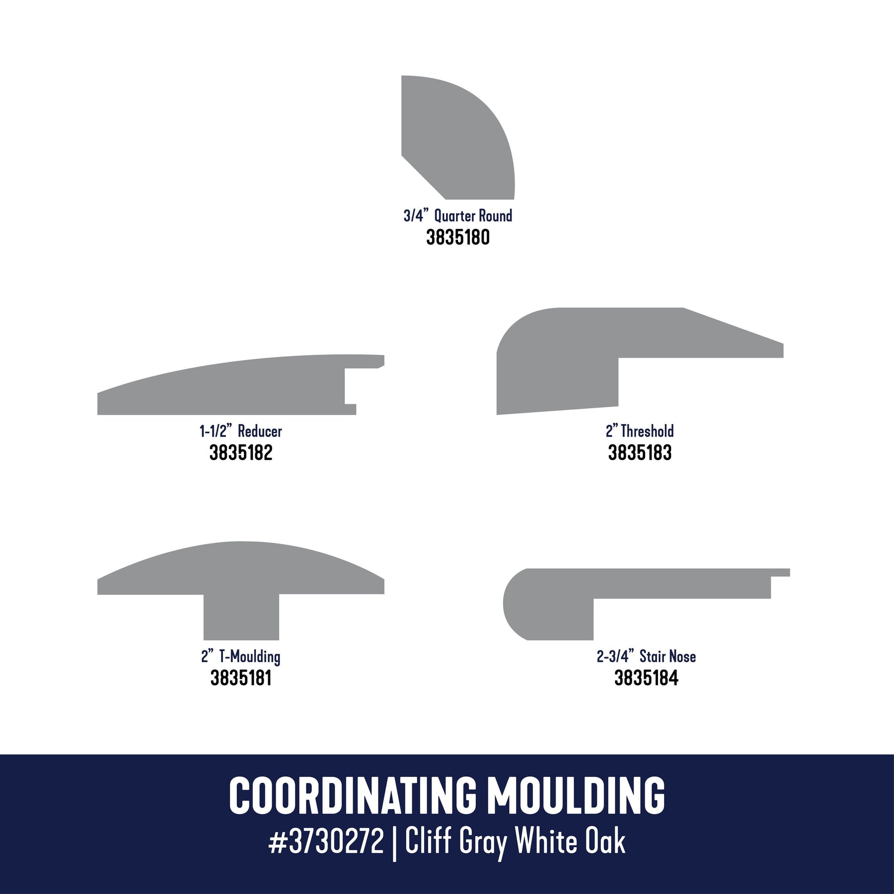 Enhance your flooring project with the Bruce Nature of Wood Plus Cliff Gray Solid Wood Reducer. Featuring a seamless transition between different flooring types, this reducer provides both functionality and style with its Cliff Gray oak finish, perfect for coordinating with Bruce hardwood floors.