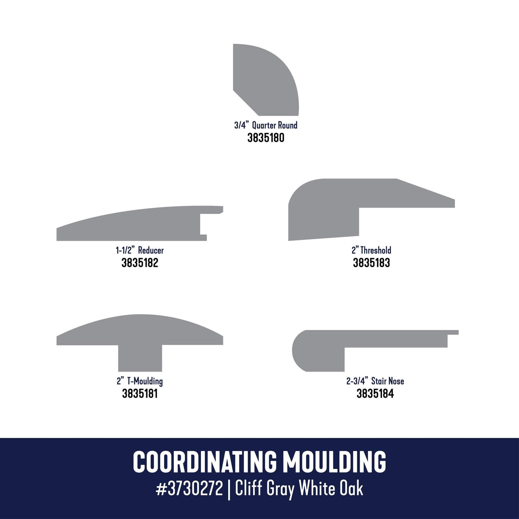 The Bruce Nature of Wood Plus Cliff Gray T-Moulding is a stylish and durable solution for seamless transitions between rooms or flooring surfaces. Crafted from solid oak, this moulding complements Bruce hardwood flooring perfectly, adding a polished final touch to your home.