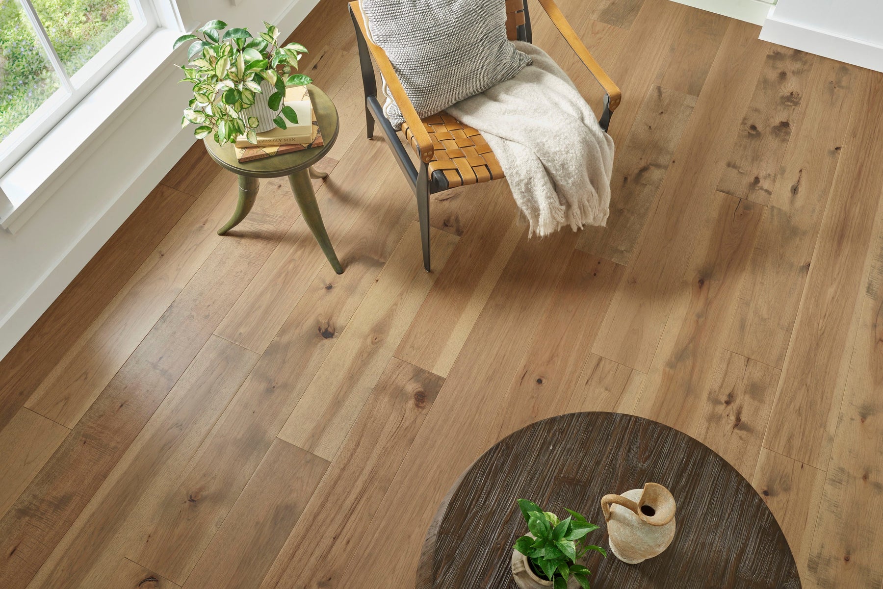 Picture a room where every step is a reminder of elegance and enduring charm with Hill Farm Hickory's rich medium brown tones and sleek finish. The smooth texture of this engineered hardwood breathes life into your floors, creating a seamless blend of tradition and modernity. Style with plush area rugs and statement furniture pieces to highlight its natural beauty, making it an essential foundation for a luxurious living experience. Let this exquisite flooring serve as a canvas for your home’s most cherished moments.