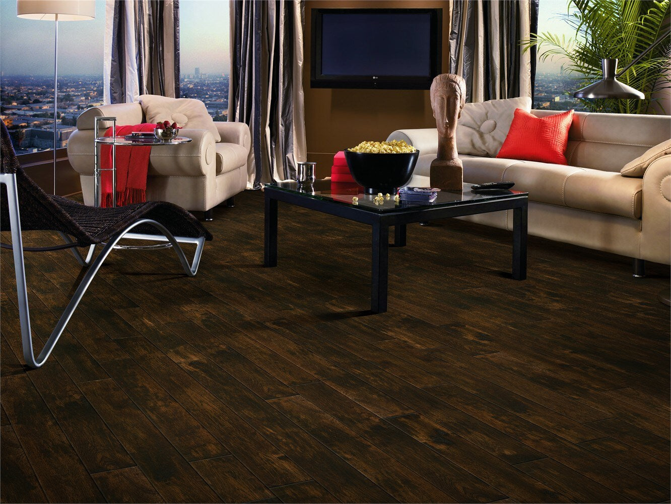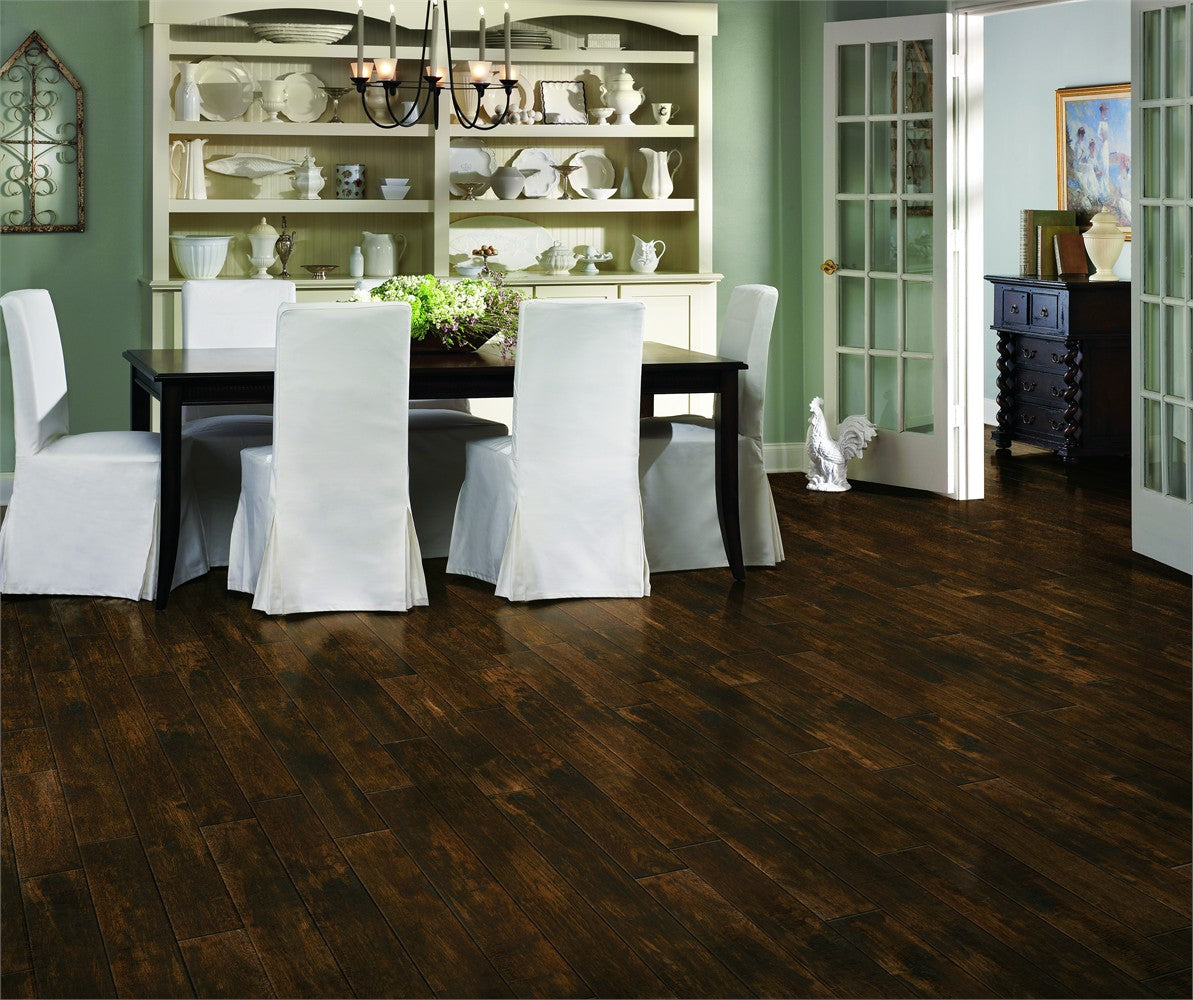 Imagine stepping into a room where the rich textures of Bruce's Mountain Grove Hickory Hardwood elegantly unite natural beauty with modern luxury. Each plank tells a story—with its handscraped surface revealing layers of artistry and craftsmanship. Picture this stunning floor beneath a plush area rug, beside a crackling hearth, creating an intimate lodge-like sanctuary. This flooring isn't merely a foundation—it's the soul-engaging backdrop that elevates your home's allure to truly sophisticated living.