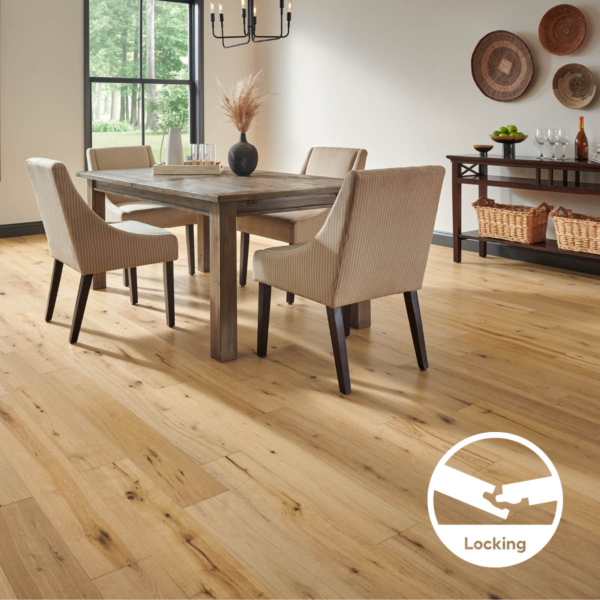 Transform your space with the stunning Golden Natural White Oak Engineered Hardwood Flooring. Styled with a wirebrushed texture and a low-gloss finish, this flooring offers a warm, rustic elegance while ensuring easy installation thanks to its Lock & Fold™ technology. Perfectly crafted for durability and dimensional stability, it's an ideal choice for anyone seeking both beauty and resilience in residential settings.