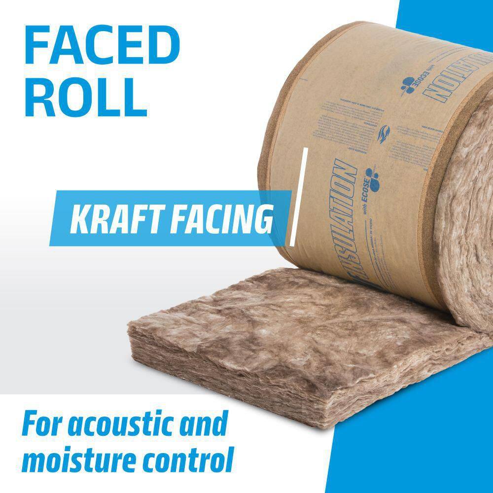 Kraft-faced R-19 fiberglass insulation roll engineered for 2x6 walls and floors. Delivers thermal comfort, sound absorption, and moisture control with formaldehyde-free ECOSE Technology. Each roll covers 75.06 sq ft and installs easily with low dust and quick recovery.