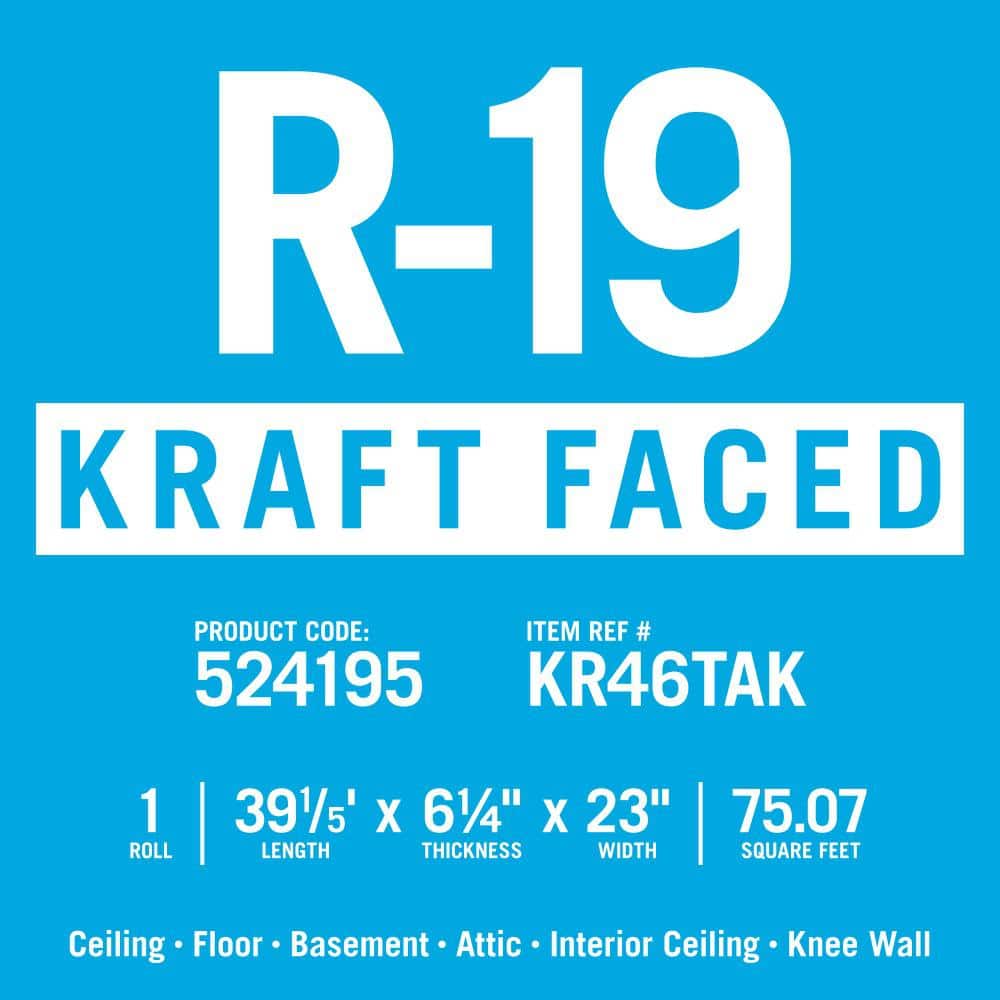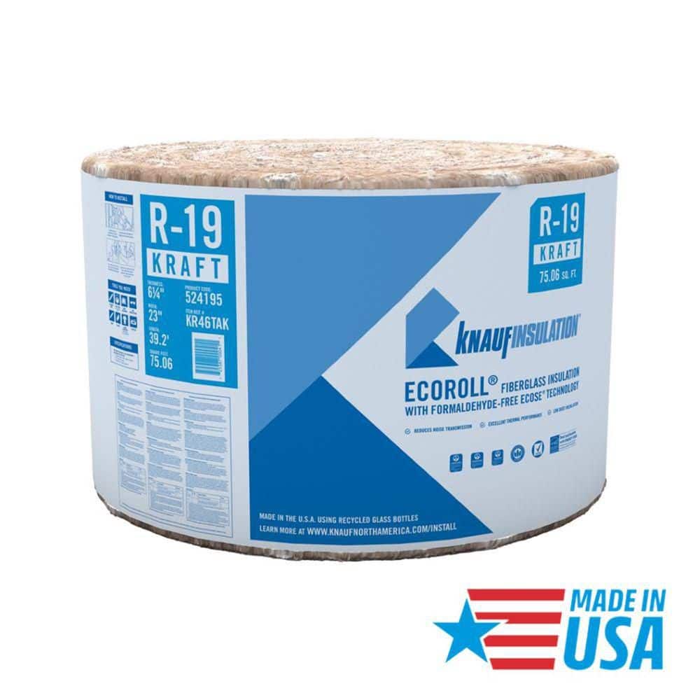 Knauf Insulation R-19 EcoRoll Kraft Faced Fiberglass Insulation Roll, 6-1/4 in Thick x 23 in Wide x 39.2 ft Long, 75.06 sq ft