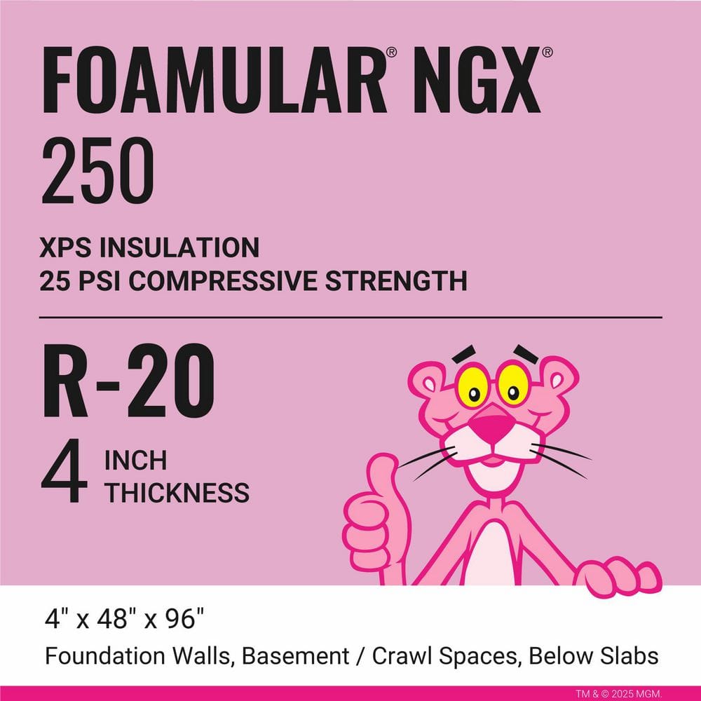 FOAMULAR 250 R-20 XPS Foam Board, 4x4x8, Square Edge