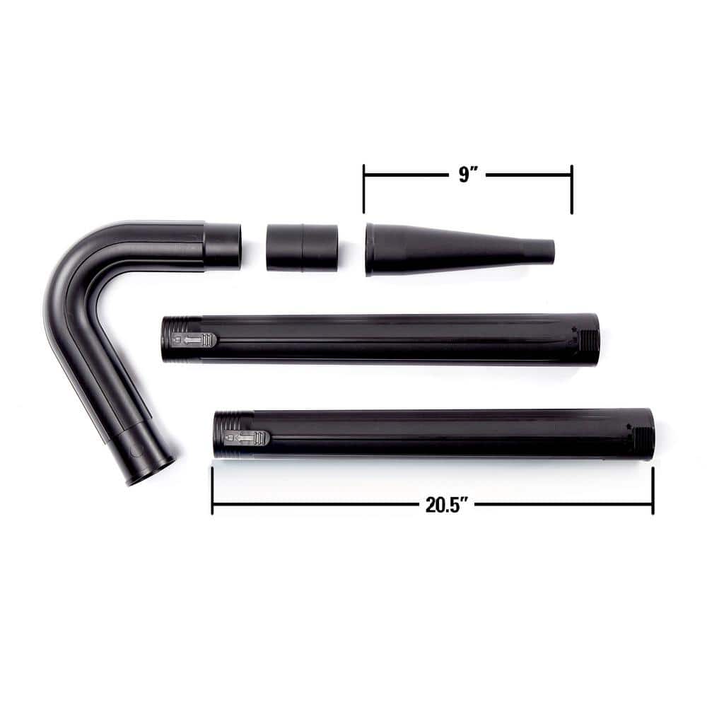Upgrade your RIDGID shop vac for easy gutter maintenance with this 2-1/2 in. accessory kit. The angled gutter elbow and locking extension wands provide high-reach cleaning, and the blower nozzle lets you clear leaves and debris using vacuum or blow functions. Compatible with RIDGID wet/dry vacs that use 2-1/2 in. hoses.