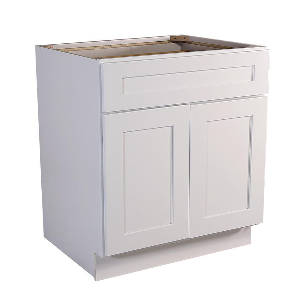 Brookings Plywood Ready to Assemble Shaker 27x34.5x24 in. 2-Door 1-Drawer Base Kitchen Cabinet in White