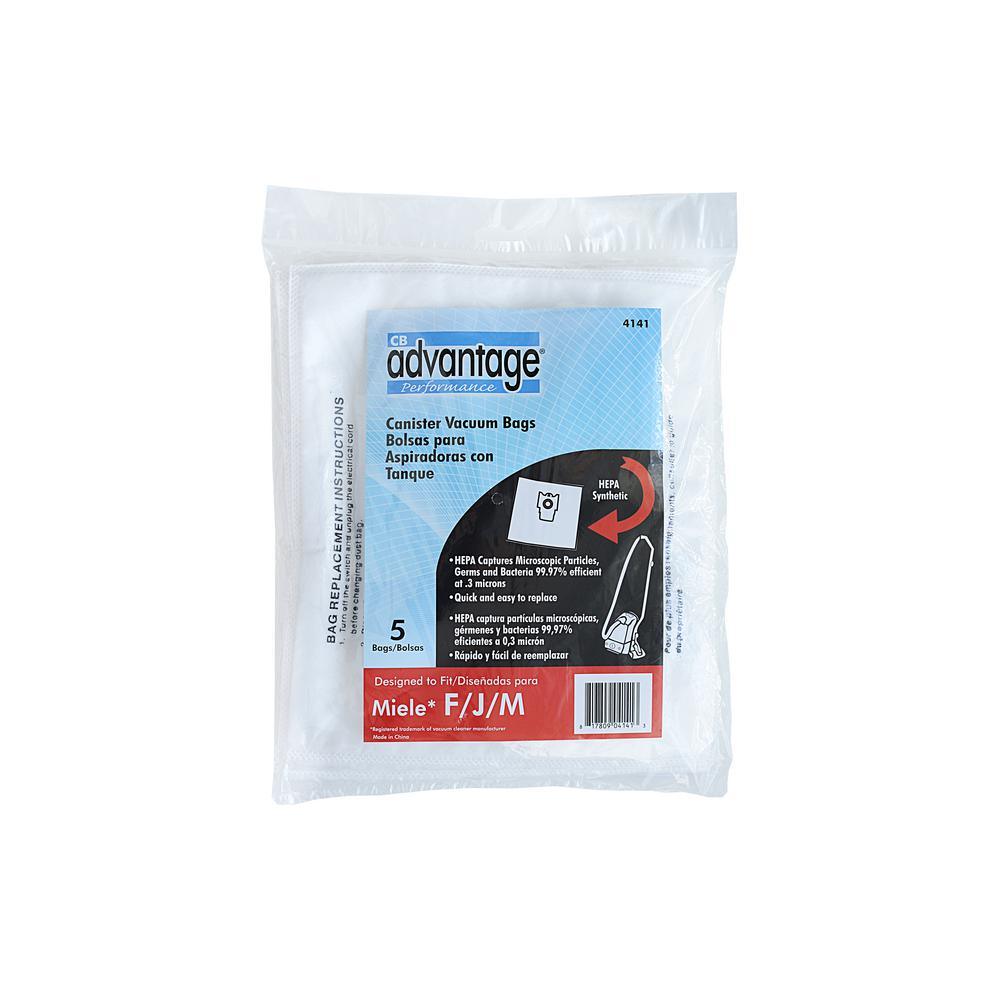 Miele F/J/M HEPA replacement vacuum bags and filters are designed Miele vacuums. The Advantage Brand F/J/M bags and filters fit the following Miele Vacuum models S241 - S256i, S290 - S291, S300i - S399S500 - S578, S700 - S758, S4000, S4999. Each package contains 5 HEPA bags and 2 filters.