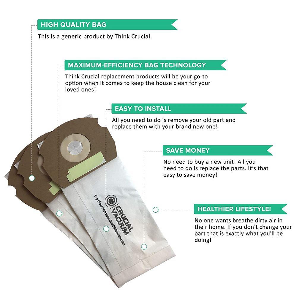 • Healthier lifestyle; no one wants breathe dirty air in their home; replacing your bags on a regular basis ensures that your carpets get cleaner and the vacuum exhaust is filtered