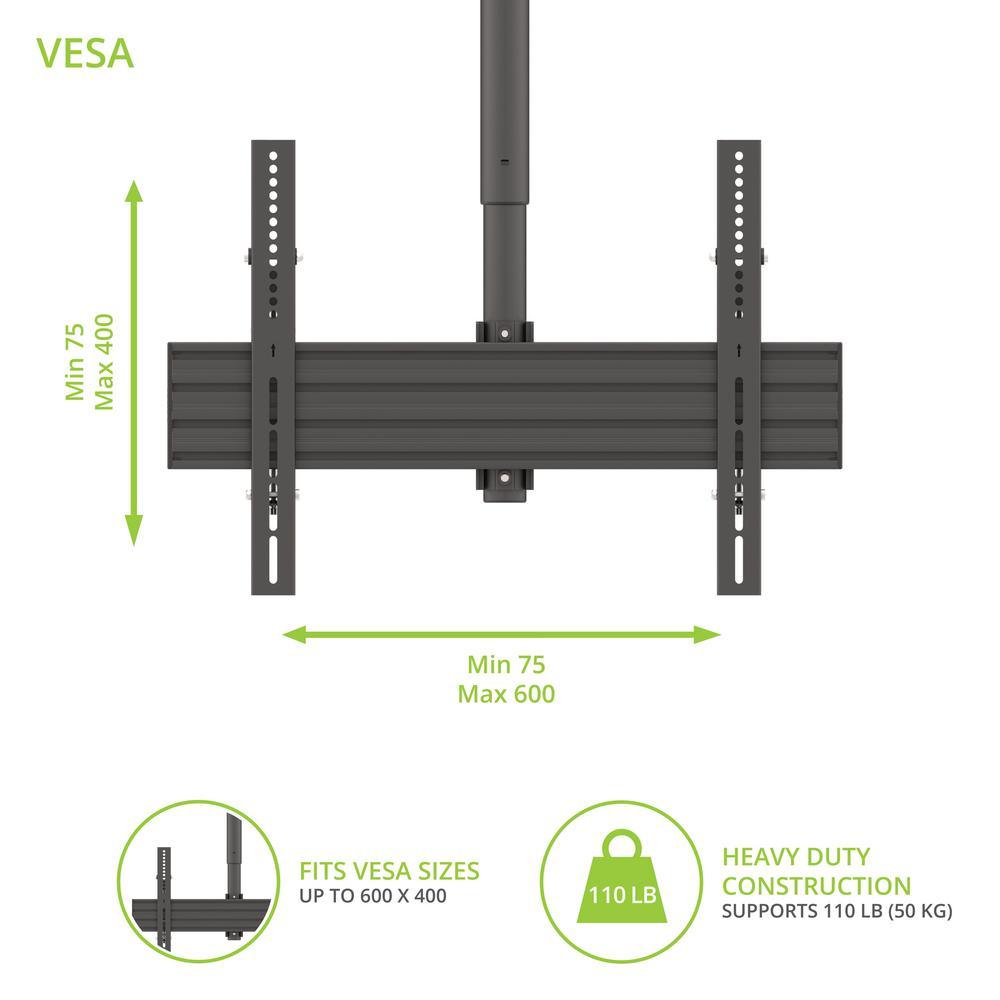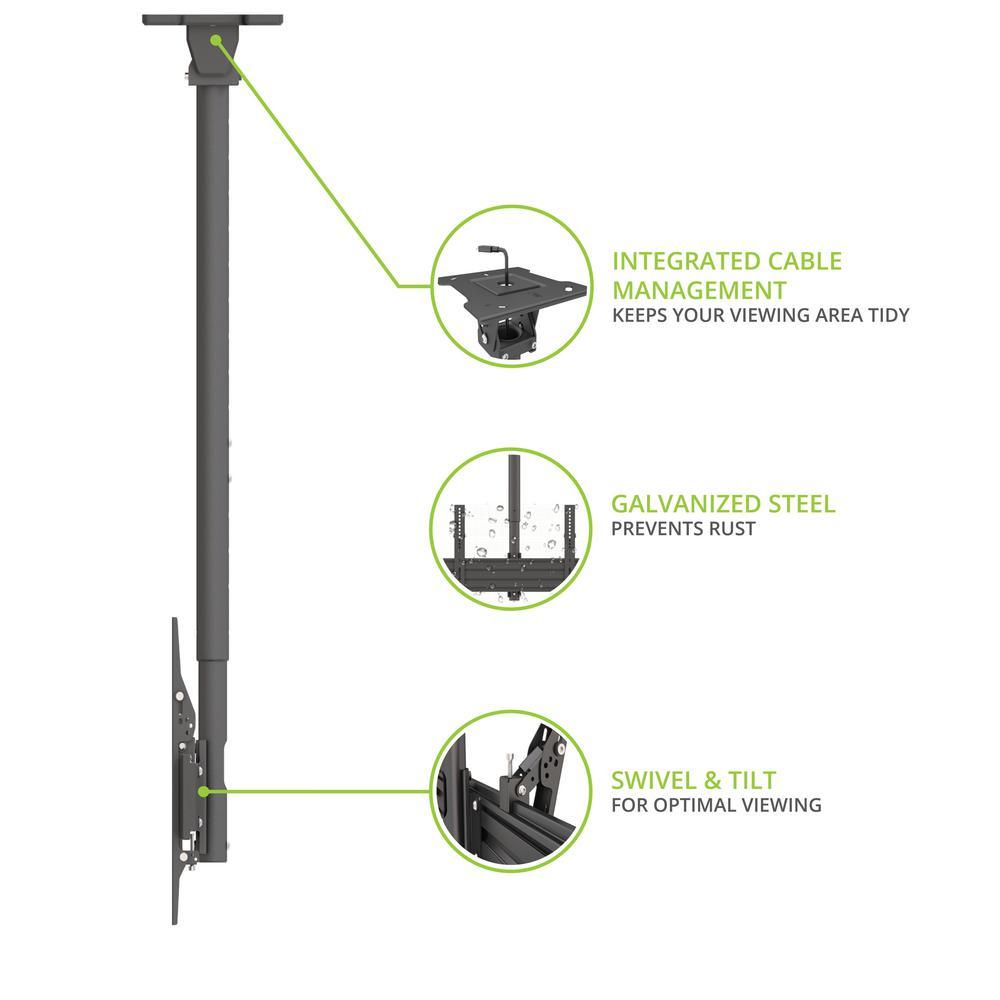 Galvanized Outdoor Hanging Ceiling TV Mount with Extension and Tilt for 37 in. - 70 in. TVs