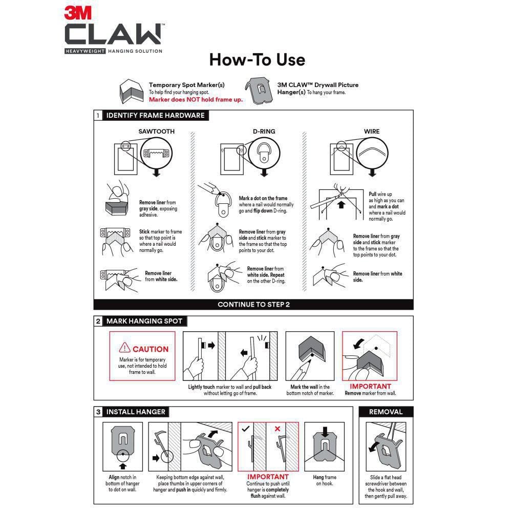 The 3M CLAW drywall picture hanger uses engineered hardened steel claws to lock securely into drywall—no studs, anchors, or tools needed. It reliably holds up to 15 lbs and includes a reusable spot marker to pinpoint placement with no guesswork.
