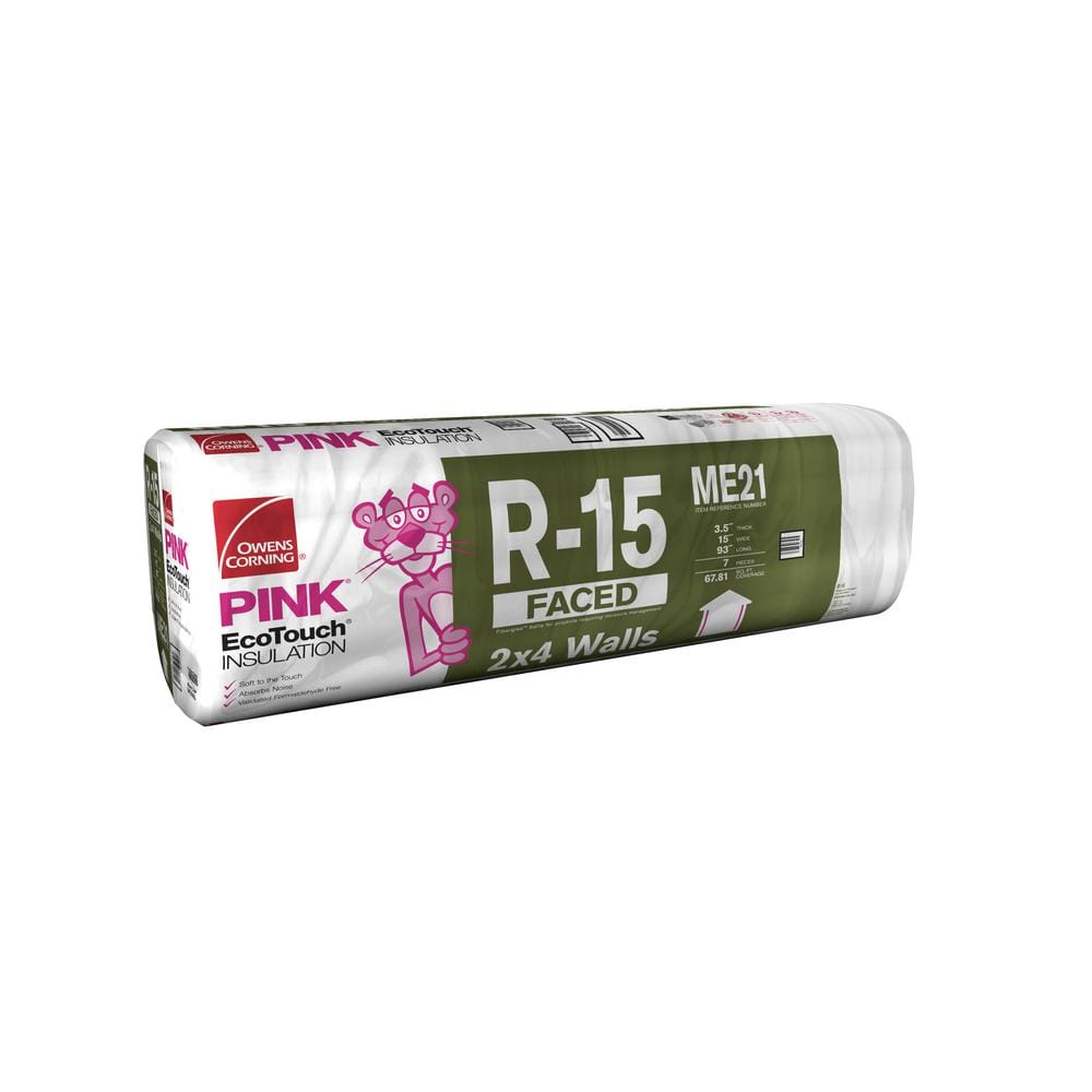 Owens Corning EcoTouch R-15 Kraft Faced fiberglass batts deliver reliable thermal and sound control for 2x4 walls. Precut to 15 in. x 93 in., this faced batt installs easily and covers 67.81 sq. ft. per bag while helping improve energy efficiency.