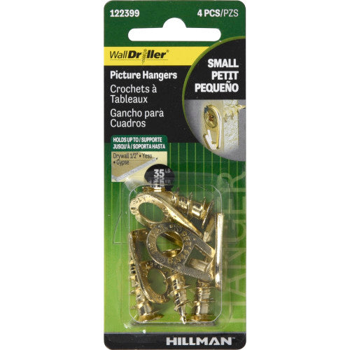 Hillman WallDriller Gold Drywall Picture Hook, 35 lb Capacity, 4-Pack