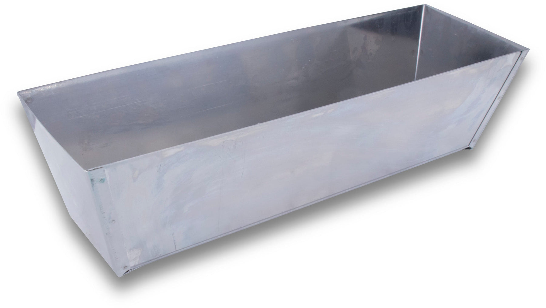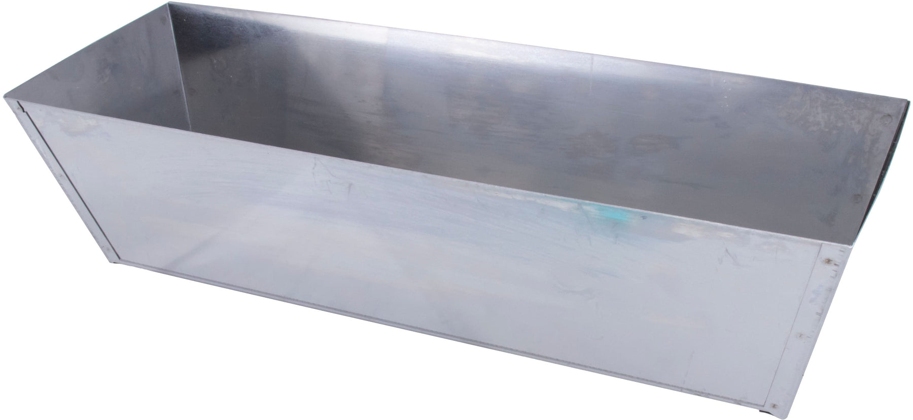 A durable stainless steel mud pan designed for clean, efficient drywall finishing. Tapered ends and mud-tight seams make mixing and scooping easy, while sheared sides help wipe knives clean.