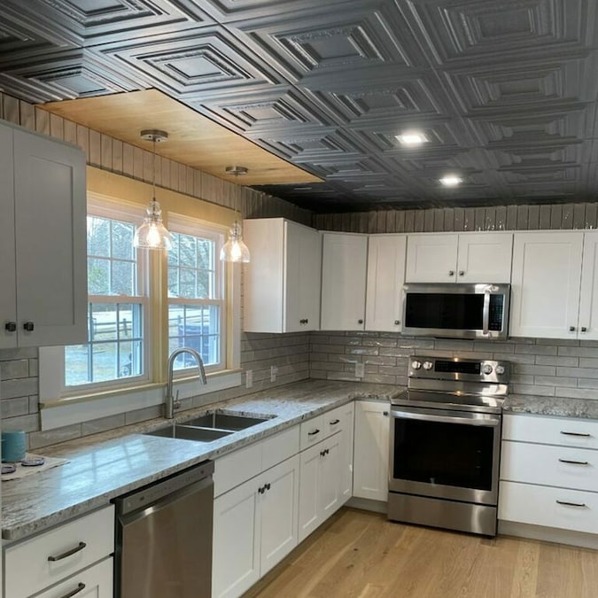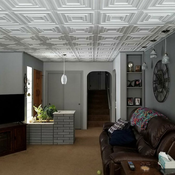 A La Maison Ceilings 1.67-ft x 1.67-ft Chestnut Grove Plain White Polystyrene Surface-mount Ceiling Tile (8-Pack, 21.6-sq ft / Case)