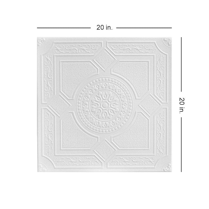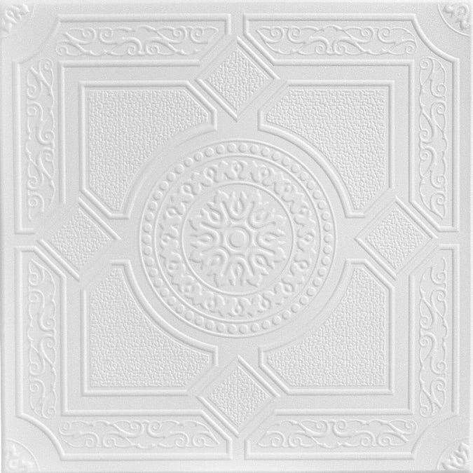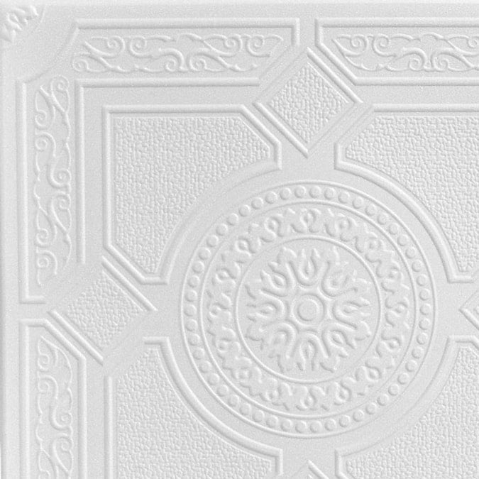 A La Maison Ceilings 1.67-ft x 1.67-ft Kensington Gardens Plain White Polystyrene Surface-mount Ceiling Tile (8-Pack, 21.6-sq ft / Case)