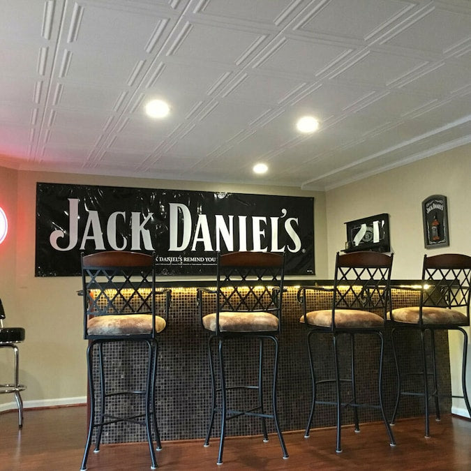 A: These tiles are designed for a glue-up installation, directly over existing ceilings. Simply apply adhesive and position the tiles.