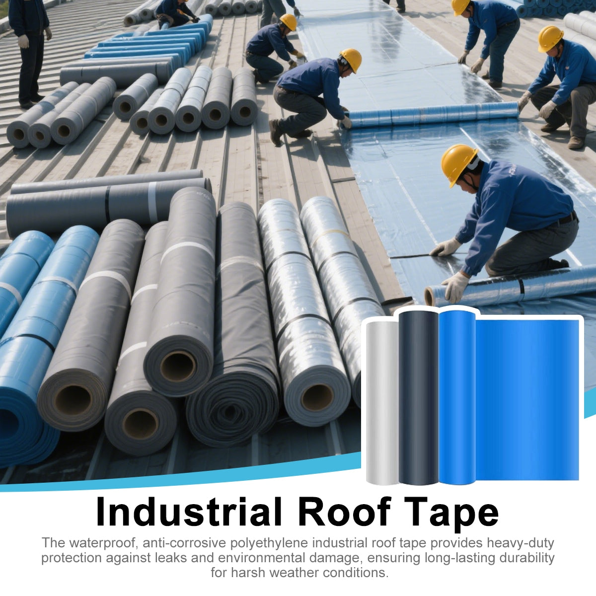 Heavy-duty polyethylene roof tape designed for leak sealing and surface protection. Delivers strong waterproofing and anti-corrosion performance with durable, UV- and weather-resistant construction. Ideal for quick repairs on metal roofs, gutters, and more.