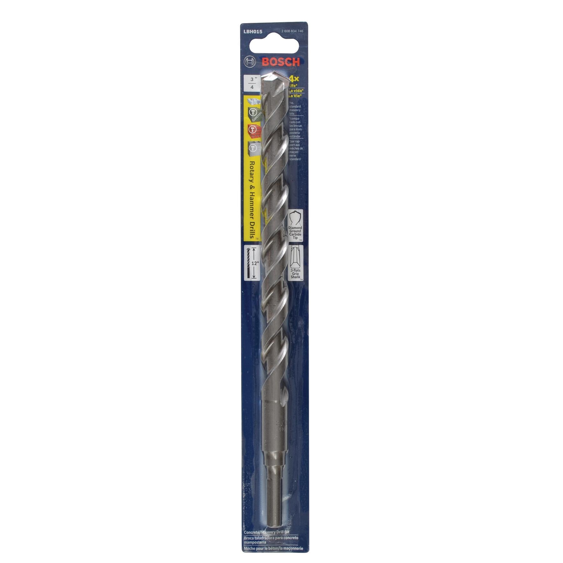 Bosch 3/4-in x 12-in HSS Round Hammer Drill Masonry Bit, Carbide Tip