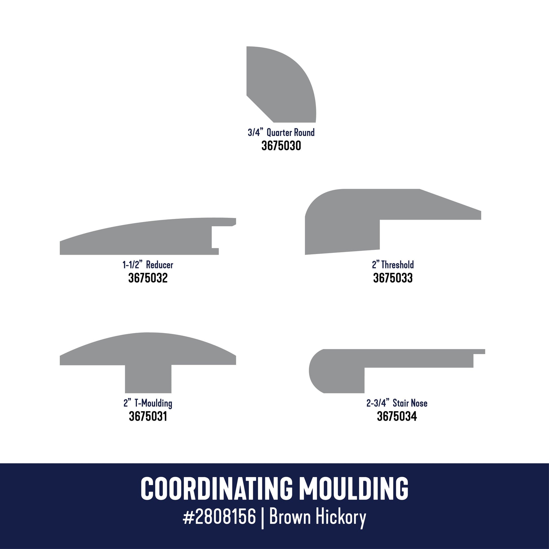 This T‑moulding brings a refined, uninterrupted flow to your spaces, marrying rooms with a subtle ribbon of soft brown wood. The prefinished hickory surface offers organic character and a smooth, rounded profile that feels bespoke. Use it to frame a doorway or define open‑plan zones with polished continuity. It’s a small detail with a luxurious impact—essential finishing for elevated hardwood interiors.