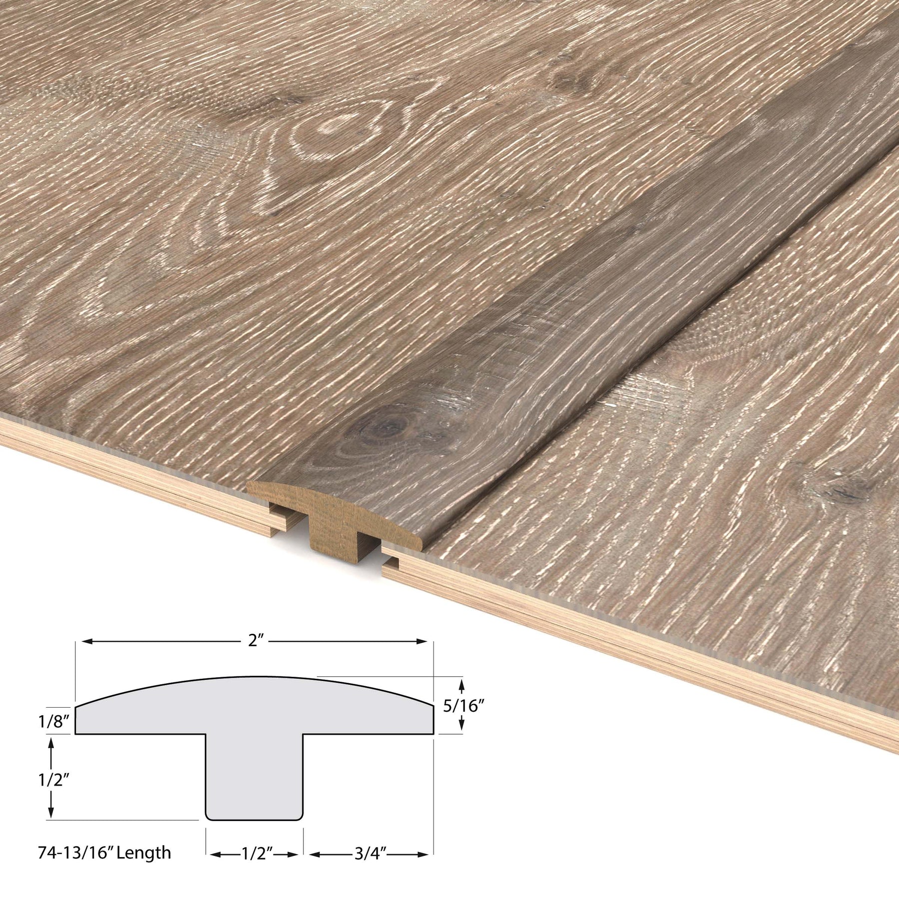 Color-matched wood T-moulding designed to transition between rooms with equal floor heights. Prefinished and scratch-resistant, it coordinates with CALI Meritage Mendocino hardwood planks for a seamless installation.