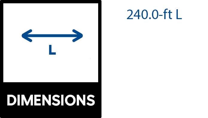 A: The cable length is 240 feet and draws approximately 5 watts per foot (about 1200W total).