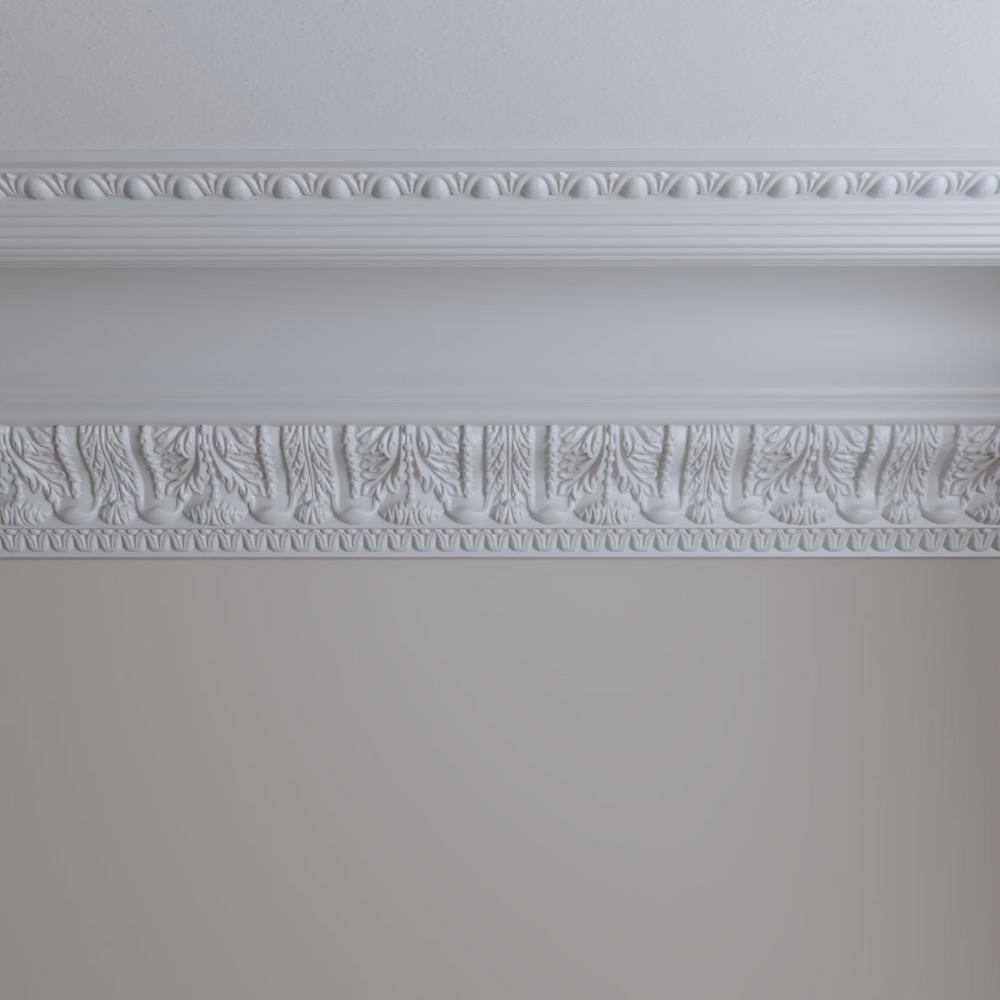 Ekena Millwork 10-1/2 in. x 13 in. x 94-1/2 in. Polyurethane Egg and Dart Acanthus Crown Moulding