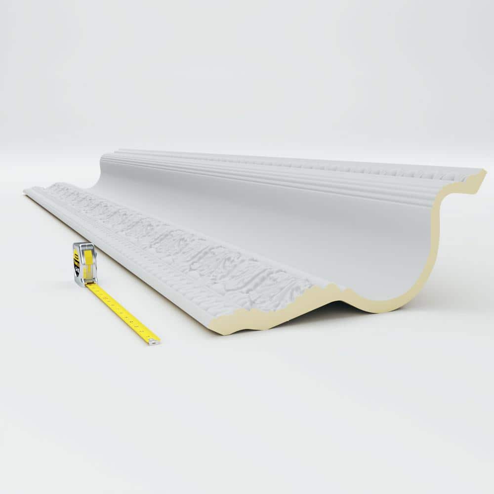 Elevate your interior design with the Ekena Millwork Egg and Dart Acanthus Crown Moulding. Made from durable polyurethane, it replicates traditional plaster profiles at a fraction of the weight and cost. This moulding resists moisture and insects, ensuring a long-lasting decorative touch for any room.