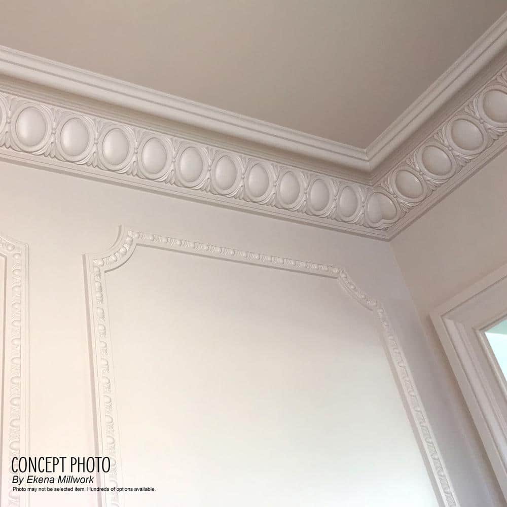 Transform your space with the elegant charm of Ekena Millwork's Strasbourg Crown Moulding and create a truly sophisticated atmosphere today.