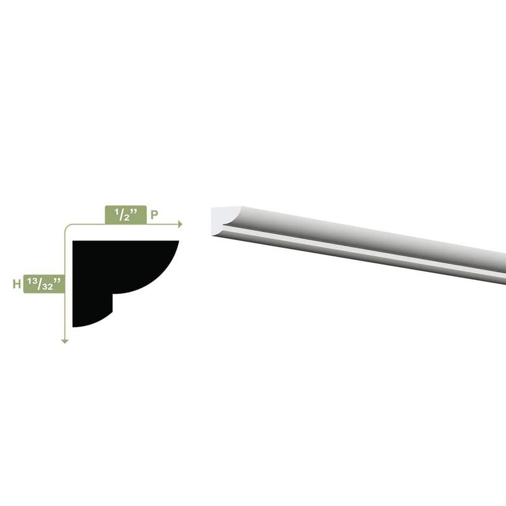 Ekena Millwork 3/8 in. x 1/2 in. x 96 in. Bead Moulding, PVC (12-Pack)
