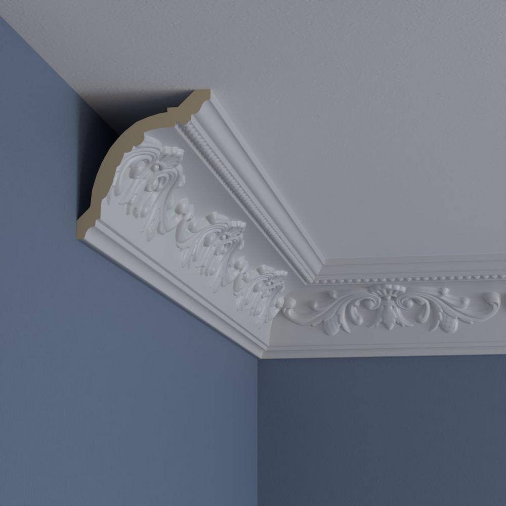 Enhance your home's elegance with Ekena Millwork's Versailles Crown Moulding, expertly crafted from durable polyurethane to mimic traditional plaster designs. Lightweight and primed, this moulding is easy to install and ideal for both indoor and outdoor applications, offering a refined finish that resists moisture and pests.