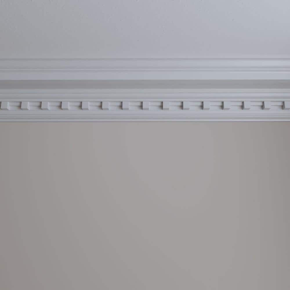 Transform your living space with this exquisite crown moulding from Ekena Millwork, where traditional charm meets contemporary ingenuity. The dentil detailing adds a touch of sophistication that elegantly defines any room, drawing the eye upward and creating a sense of height and grandeur. Perfect for framing an opulent chandelier or adding depth to a modern ceiling, this moulding is not just a finishing touch but a focal point of luxurious living, effortlessly achieved.