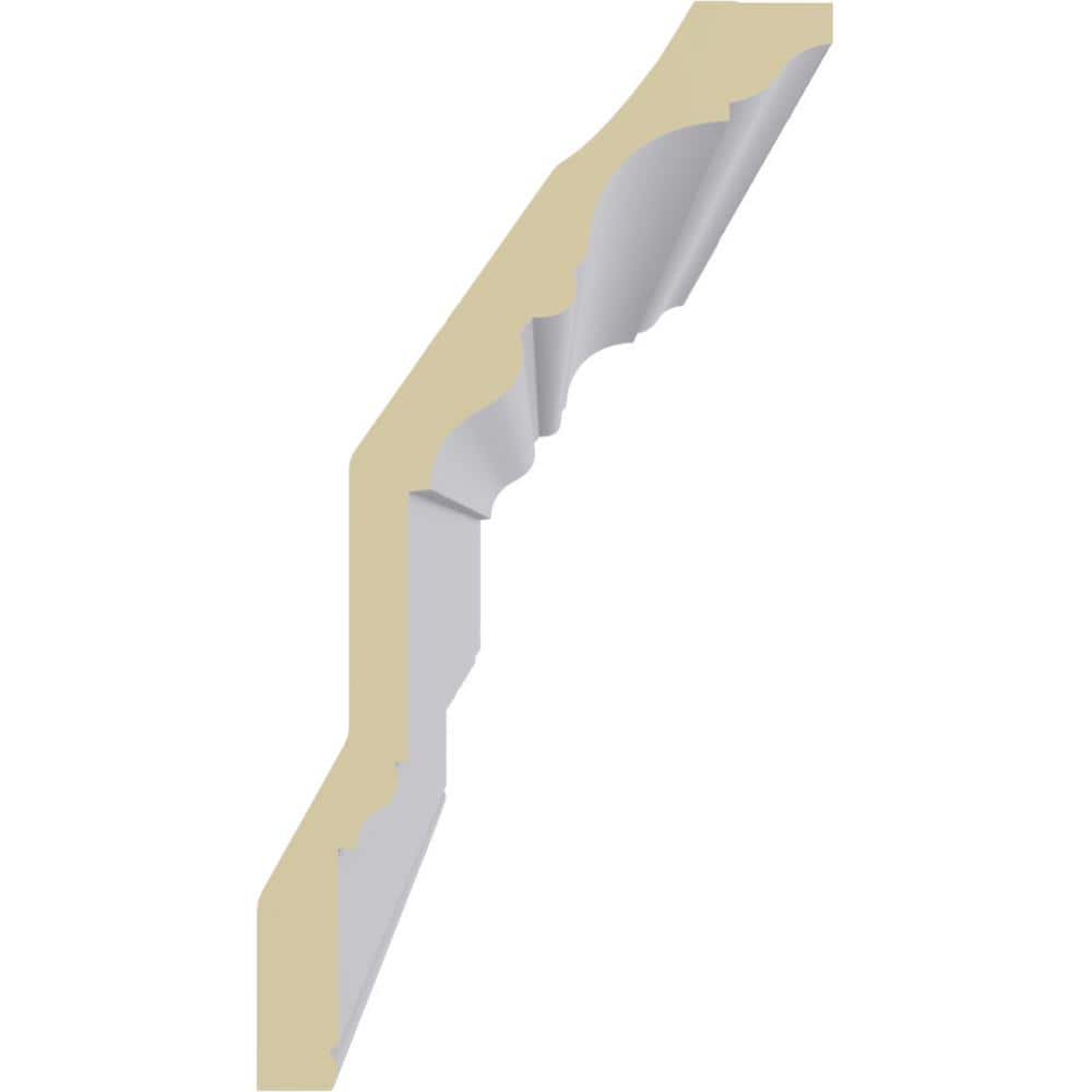 Transform your space with the elegant Ekena Millwork 6-7/8 in. x 13 in. x 94-1/2 in. Polyurethane Eris Smooth Crown Moulding. Featuring a classic design modeled after traditional plaster mouldings, this lightweight and easy-to-install product offers remarkable detail and durability without the high cost. Plus, it's resistant to rot, insects, and moisture, ensuring long-lasting beauty indoors and out.