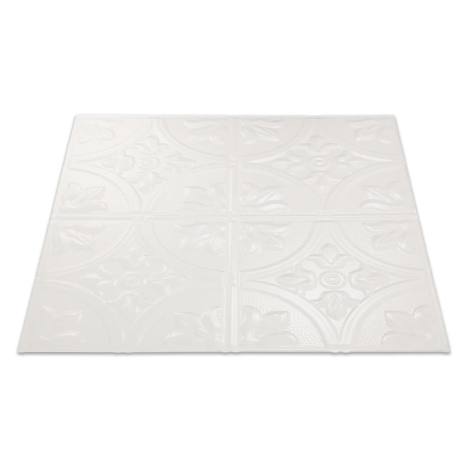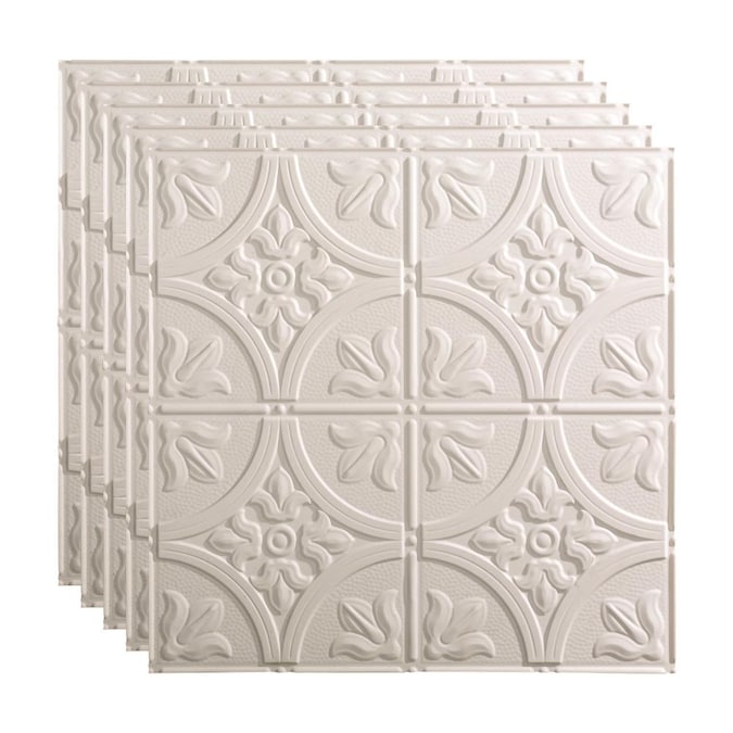 Enhance your space with the Fasade 2-ft x 2-ft Gloss White PVC Ceiling Tiles. Designed to emulate the classic look of tin, these tiles are water and corrosion-resistant for lasting durability and are easily installed into any existing ceiling grid. Ideal for both renovations and new constructions, they offer immediate sophistication to any room.