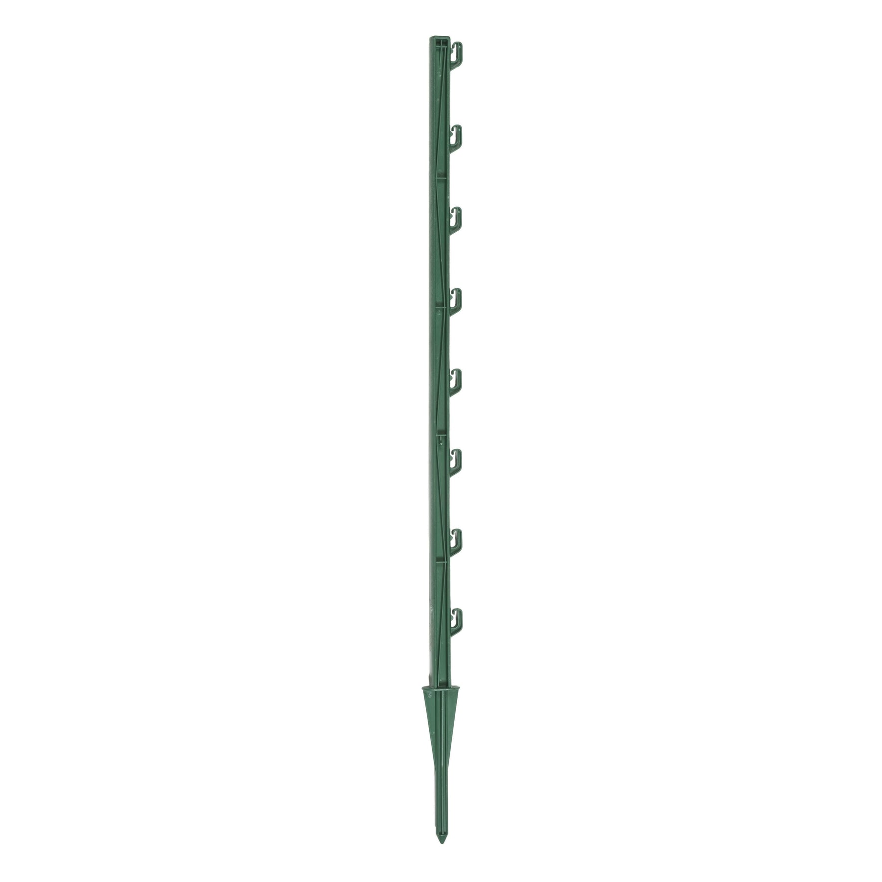 The Fi-Shock Plastic Electric Fence Post is designed for temporary fencing applications, offering reliable durability and easy installation. Made from reinforced, UV-resistant plastic, this green post blends seamlessly into your outdoor space and supports diverse fencing needs with its eight versatile wire clips.