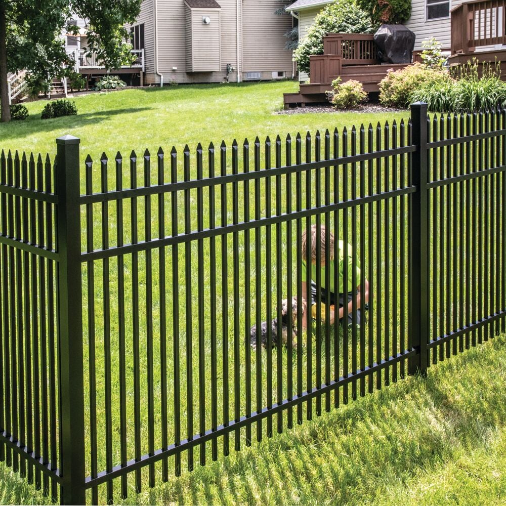 • Design: Features a decorative pressed-point top style with spaced pickets, adding a touch of elegance to any landscape.