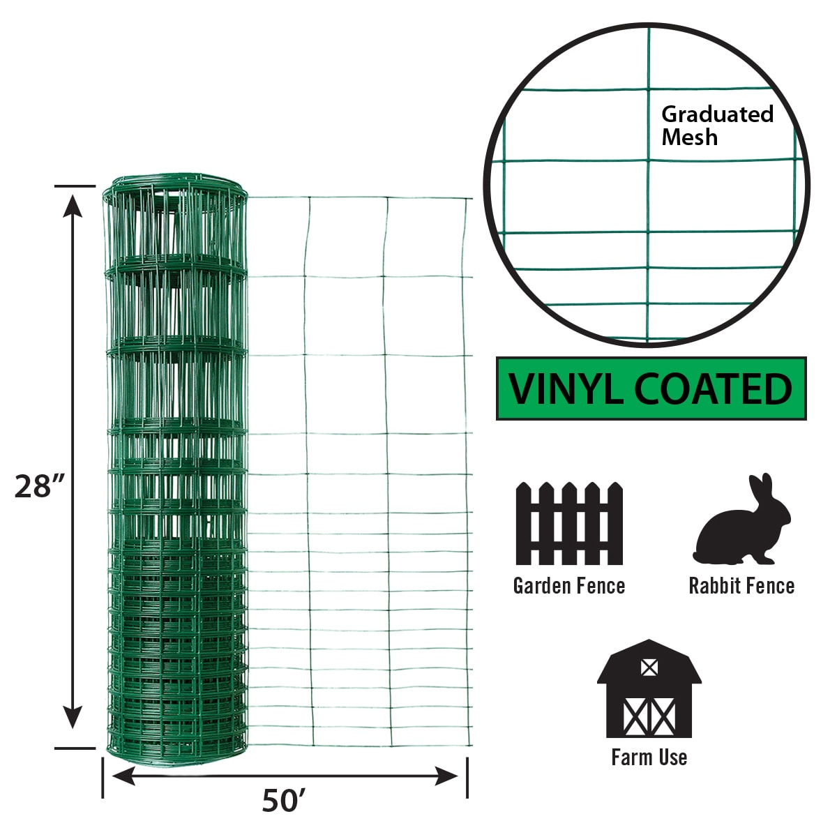 Protect your garden with the Garden Craft Welded Wire Fencing, crafted from durable PVC-coated steel. This 50-foot by 2.3-foot fencing features a unique design with mesh openings that narrow at the bottom, providing superior defense against rabbits and other garden intruders.