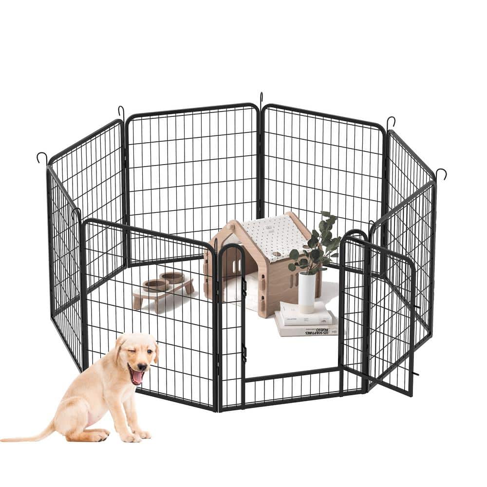 GOGEXX 54 in. L x 54 in. W x 32 in. H 8 Panels Metal Pet Playpen with Door Dog Fence Playground Puppy Guard For Outdoor