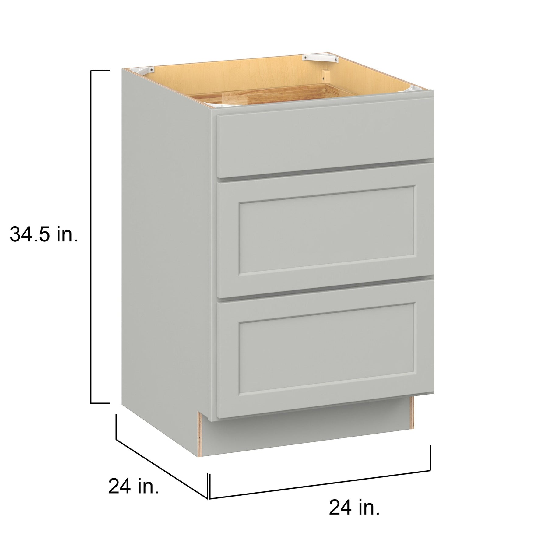 Hugo&Borg PRO Jasper 24-in W x 34.5-in H x 24-in D Whisper Gray 3-Drawer Base Ready To Assemble Plywood Cabinet (Flat Panel Style)