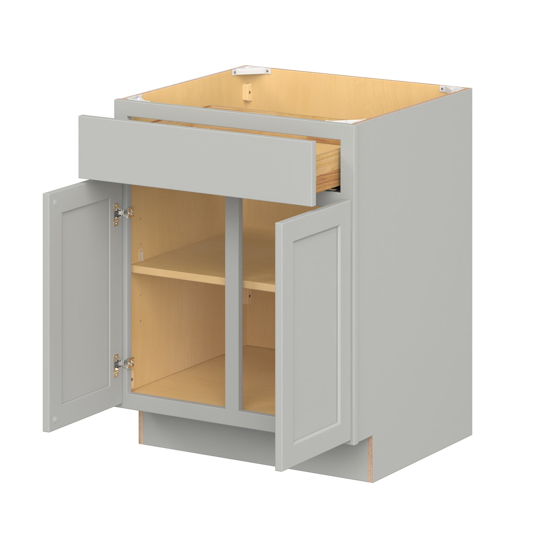 The Hugo&Borg Whisper Gray Base Cabinet combines sleek Shaker style with professional-grade all-plywood construction, making it a premium choice for contractors and homeowners alike. With its innovative Quick Assembly System, this cabinet provides an effortless setup experience, elegantly accented by solid wood dovetail drawers and a modern painted finish.