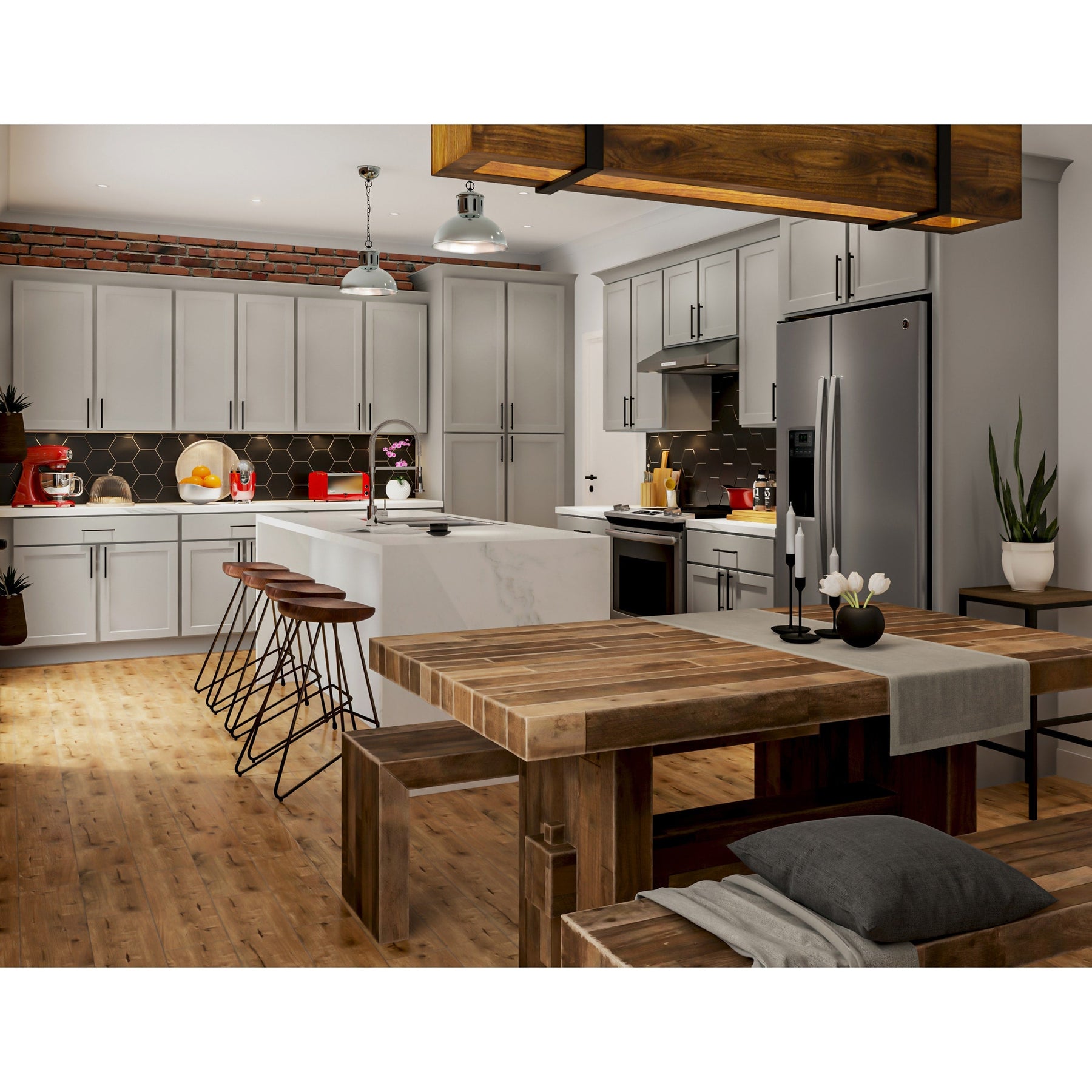 • Modern Style: Features solid wood framed construction with transitional flat panel Shaker doors.