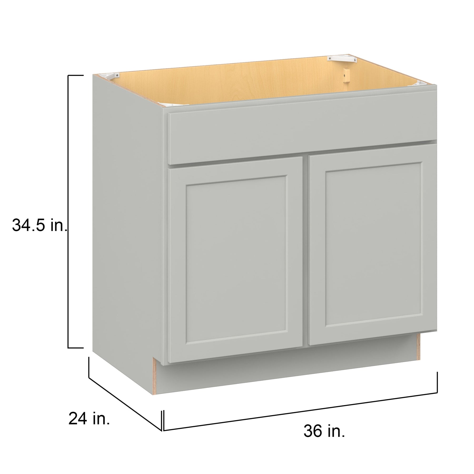 Hugo&Borg PRO Jasper 36-in W x 34.5-in H x 24-in D Whisper Gray Sink Base Ready To Assemble Plywood Cabinet (Flat Panel Shaker Style)