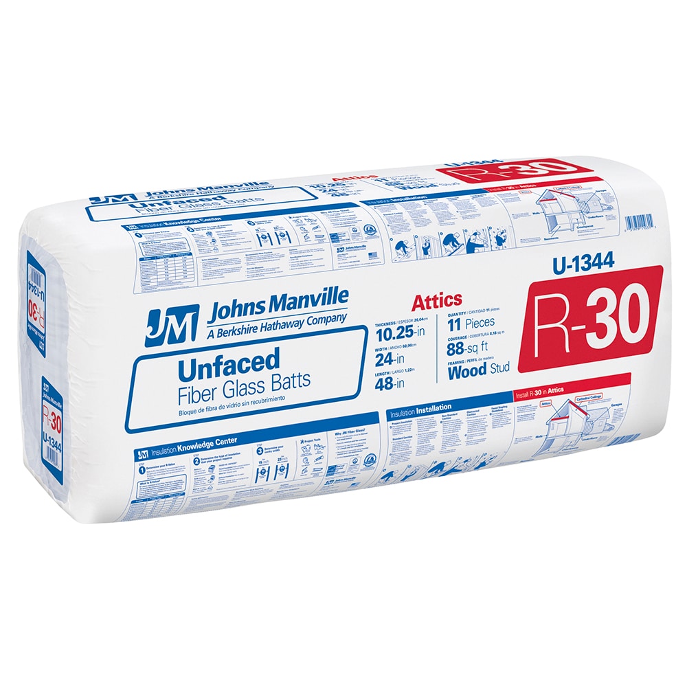 Johns Manville R-30 Unfaced Fiberglass Batt Insulation, 88-sq ft Coverage, 24 in x 48 in (U1344S)