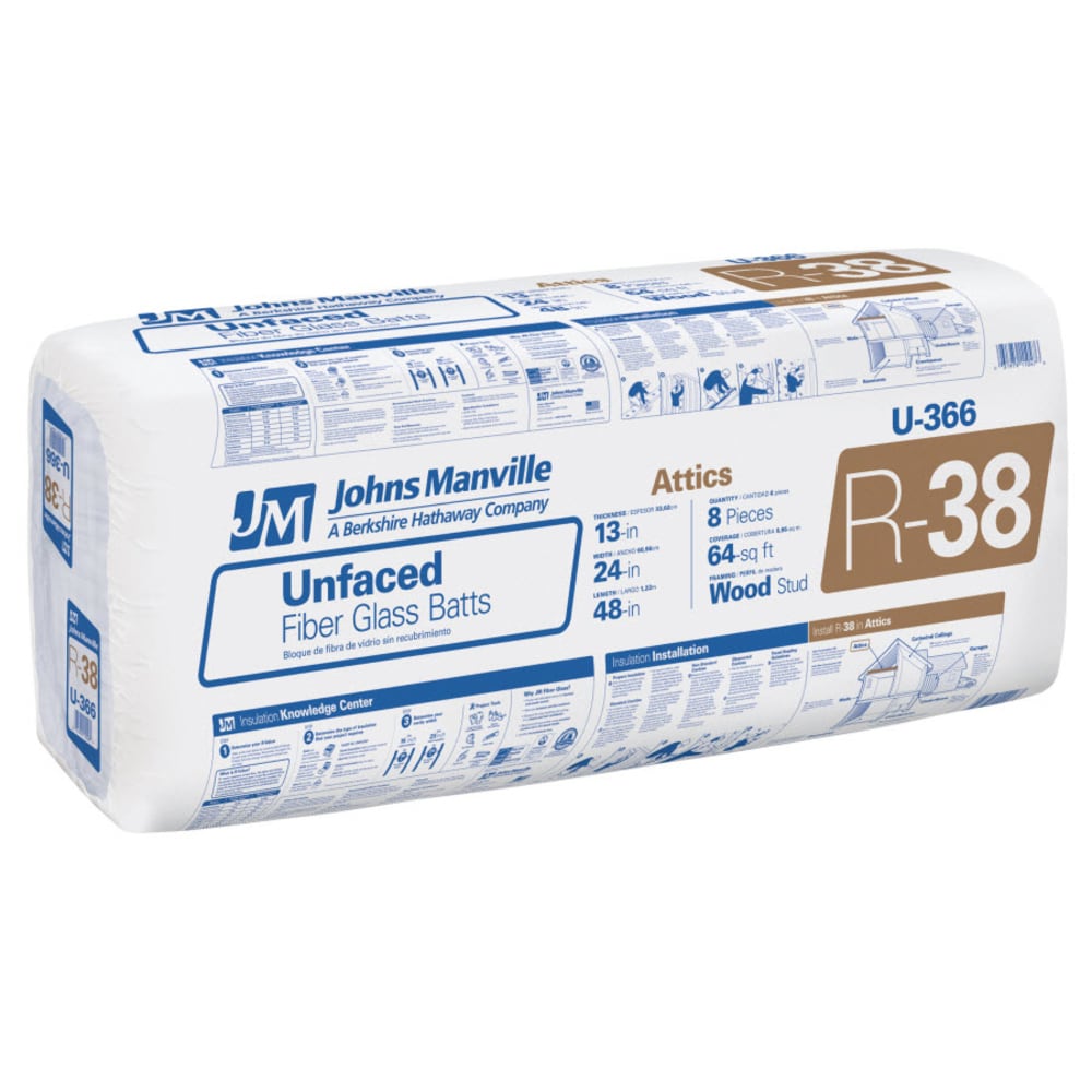 Johns Manville R-38 Unfaced Fiberglass Batt Insulation, 64-sq ft Coverage, 24-in x 48-in, U366S