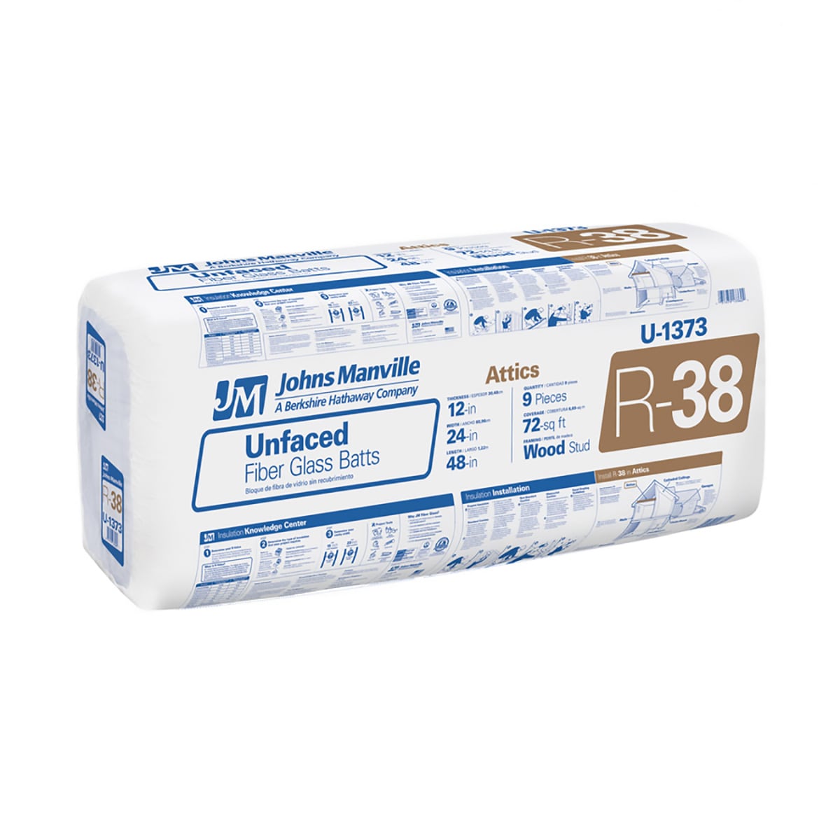 Johns Manville R-38 Unfaced Fiberglass Batt Insulation, 72-sq ft Coverage (24-in W x 48-in L) - U1373S