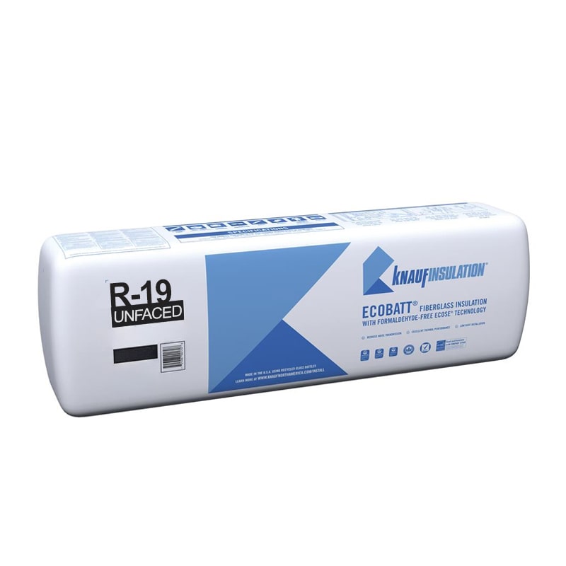 Knauf Insulation EcoBatt R-19 Unfaced Fiberglass Insulation Batts, 6.25 in x 15 in x 48 in, 100 sq ft