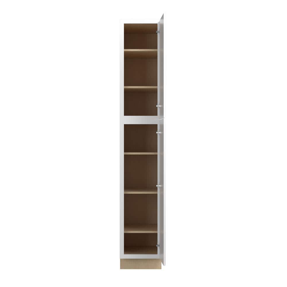 The Norfolk Shaker Pantry Cabinet from Kunal Kitchens effortlessly blends form and function with its elegant flat recessed panel doors in a timeless white finish. Built with premium plywood and solid birch components, this cabinet offers remarkable durability and versatility for any kitchen space.
