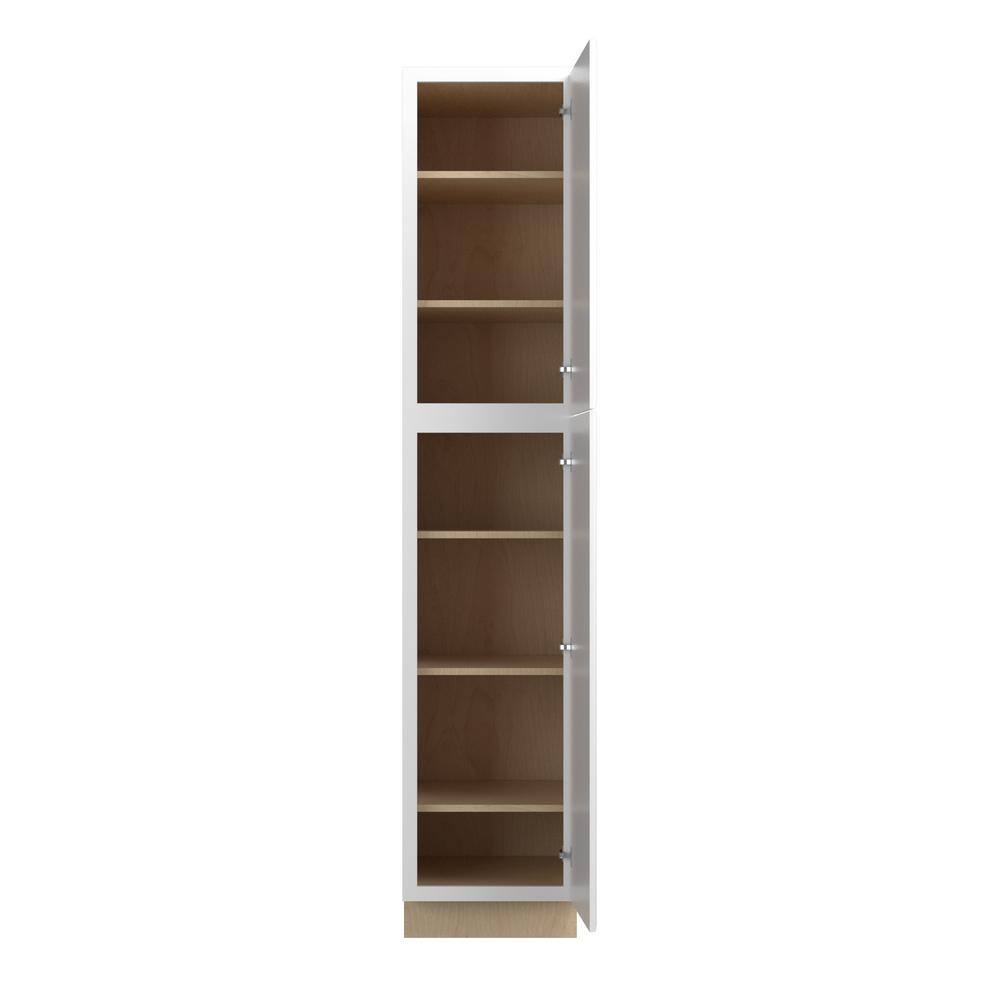 Elevate your kitchen space with the Norfolk Shaker Pantry Cabinet, showcasing a classic Shaker door style in a pristine painted white finish. Constructed from durable plywood with a natural birch wood veneer interior, this cabinet offers both elegance and resilient storage solutions. Soft-close features and adjustable shelves enhance its functionality and appeal to both pros and DIYers.